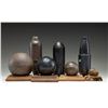1 - 23.5 lb., 5.5" diameter ball. Also included are 4 wooden stands from 1 shell & 3 balls. CONDITION: items appear intact with corrosion or worn black paint. Stands in good condition with marks. PROVENANCE: Estate Collection of John "Jack" Dhooghe. (02-25570/MD). $500-1,000.