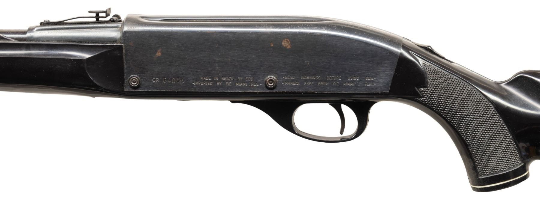 2) CBC NYLON 66 SEMI AUTO. Cal. 22 LR. S# GR64064. Licensed clone of the Remington Nylon 66 w/ 19.5" bbl. & black Zytel stock. CONDITION: good blue with peppery oxidation throughout. Front sight has added orange paint. Very good stock appearance. PROVENANCE: From the PMRB Collection. (25-5939/MD). ALL MODERN. $400-600.