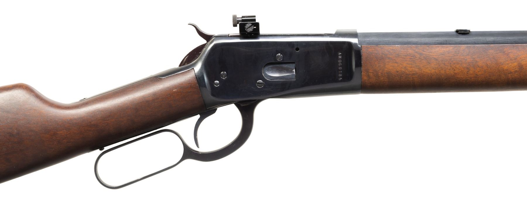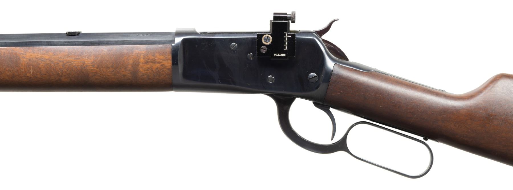 1) ROSSI 92 LEVER ACTION. Cal. 45 Colt. S# AM060185. Oct. 24" bbl. Blade front sight w/ added white paint, rear sight dovetail & Williams receiver sight. Tubular mag. Hardwood stock set w/ crescent buttplate. CONDITION: very good to near excellent overall appearance showing light handling marks. Very good rifling. (25-5955/MD).