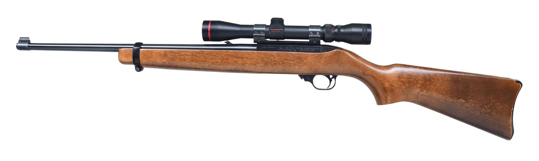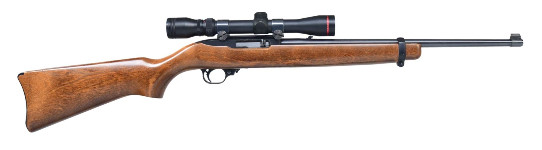 Cal. 22 LR. S# 124-45961 (1983). Bbl. 18.5". Bead front sight and folding rear sight. Simmons Deerfield 3-9x32 scope with duplex reticle on Weaver rings and grooved rail. Birch stock with carbine buttplate. MAGS: one 10 rnd. CONDITION: very good overall, with light wear. Shiny bore. (24-5739/MD). MODERN. $200-300.