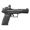 Cal. 5.7X28MM. S# 642-28155. Bbl. 4.94" black Nitride coated alloy steel. Mfg. 2021 (2020 to date) as Model 16401 that is not subject to factory recall as serial number is above affected pistols. Black oxide finished slide has Outer Impact reflex sight base with ARO AT3 red dot sight installed in addition to its standard dovetailed green fiber optic front sight and factory adjustable rear sight. Frame is ergonomically designed and made of high performance glass filled nylon with provision for reversing magazine latch. Extended 1911 style ambidextrous safety, loaded chamber port, and 5 slot Picatinny style accessory rail. Secure Action fire control having hidden hammer and blade safety trigger. High cut squared trigger guard. MAGS: 2 steel drop free factory 20 rd. UNATTACHED ACCESSORIES: matching numbered factory black plastic carry case with packaging plus 4 boxes (50 rds. each; 200 rds. total) of ammo (2 FN & 2 Federal). CONDITION: all aspects near excellent with like new appearance. (25-6112/NW). MODERN. $450-600.