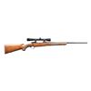 ACTION RIFLE. Cal. 257 Roberts. S# 72-18618. Bbl. 22" sporter weight without provision for sights; without "warning marks" (initiated 1978) and with 200th year Bicentennial marking. Mfg. 1976 (1968-1992 for all tang safeties) with checkered walnut stock having grip cap, red pad and sling studs. Factory scope rings holding quality Bausch & Lomb Balfor B gloss finished 4X32 cross hair reticle scope. CONDITION: all aspects near excellent including bore and scope set. (24-2845/NW). MODERN. $750 -1,000.