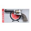 REVOLVER. Please note as of 4/8/25 this item description has been updated. Please revisit this description and contact us with any questions. Cal. 22 LR S# 201866. Barrel is 4 5/8" without "INC." in address having serrated blade front sight; frame mounted rear sight is dovetailed windage adjustable sight having square notch and retaining screw under top strap (only Single-Six variation to have this non-friction retention method). Made 1956 (1956-1962 for all Lightweight variations) with natural finished alloy cylinder frame, black anodized alloy XR3 grip frame, Martin hard coated brownish bronze toned fluted cylinder plus checkered hard rubber grips (distinct brown tone on right and slight brown tone on left) having black eagle medallions. All Lightweight variations are in the 200000 serial number range; 200001 to 212534. Besides the Tri-Color, there was a LWAC (all blue with alloy cylinder) and a LWSC (all blue with steel cylinder); within these 3 major variations are minor sub variants depending on loading gate, base pins and base pin latches ejector housings, grip frames, ejector rods and grips; some even marked "S" for "Second". Very early (#1866) example with steel short throw ejector housing, serrated ejector rod head, flat loading gate, narrow band base pin, non drilled through base pin latch and "skinny" trigger (plum hued as is hammer). Retains original lockwork; has not had factory safety recall update. Production canceled due to unenthusiastic buyer reception due to misconceived views of alloy durability and the fact that Ruger had backorders for every steel Single-Six they could produce. UNATTACHED ACCESSORIES: original black wreath factory box and shipping sleeve both numbered 212313. Both boxes in remarkable, top collector condition; even has original brown waxed paper (no manual). Very unusual to see a top conditioned box and almost unheard of to have the shipper too. CONDITION: Overall condition is about near excellent with just a trace of firing residue. Martin hard coat has extremely light bright spots at beginning of cylinder notch leads. Balance is near excellent, top collector condition to include bore and grips. CURIO (23-6632). $2500-3500.
