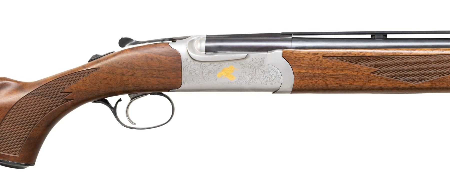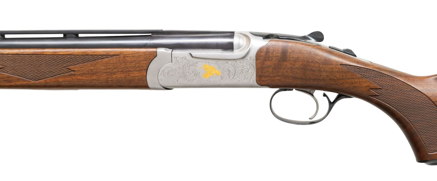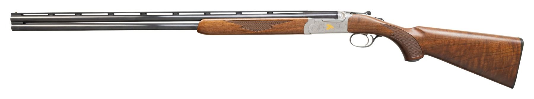 Cal. 28 Ga. S# 420-21515. Bbl. 28" with Ruger marked Briley skeet chokes and without side ribs; has ventilated top rib plus brass bead front sight. Mfg. 2007 (2001-2011 for this model; 1994-2011 for all 28 Ga. Red Labels) as post 50th year issue of 1999 that had gold inlaid woodcock on right and 50th year machine engraving on left; this later model has the bird on both sides. Receiver, trigger and forend iron are stainless with the balance blued. Model is KRL-2827BRE (Briley chokes and engraved) with catalogue number 04269. Checkered walnut pistol grip stock set with steel grip cap having gold eagle in center plus serrated Ruger logo buttplate. UNATTACHED ACCESSORIES: matching numbered factory box with its 2 component boxes inside plus 3 spare Ruger chokes (IC, Mod & Full) and Ruger choke wrench. CONDITION: all aspects near excellent with a new appearance. Unrepaired hairline crack at bottom of forend extending between the exposed sections of forend iron. PROVENANCE: Estate of Groves Herrick. (25-5658/NW). MODERN. $1,750-2,250.