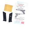 2) MARK II 22/45 TARGET WITH FACTORY BOX & MATCHING SLEEVE. Cal. 22 LR. S# 220-68015. Mfg. 1995 as Model: 0189 / Catalog No. P-4. Blued finish. Bbl. 4". Black plastic grips. MAGS: 2-10 Rds. UNATTACHED ACCESSORIES: Factory box & packaging. CONDITION: near excellent overall; sharp rifling. (24-2951/MD). ALL MODERN. $550-750.