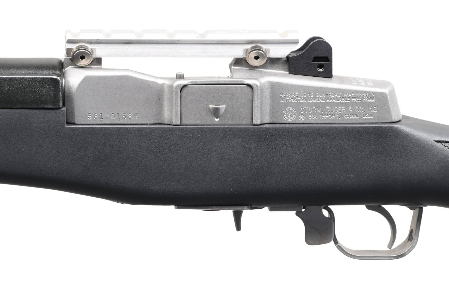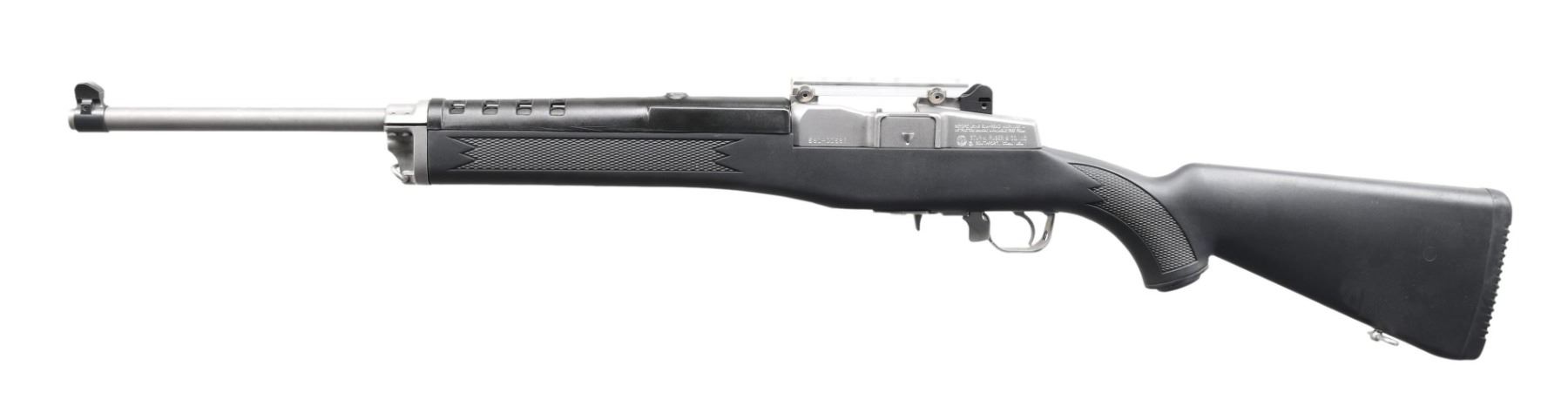 Cal. 7.62x39. S# 581-01585. Bbl. 18 1/2". Blade front sight with protective ears. Aperture rear sight. Receiver mounted Weaver style scope mount. Mfg. 2006. Stainless finish. Black synthetic pistol grip stock with bottom mounted sling swivels. MAGS: 1-5 rd. factory. CONDITION: stock set shows a few handling marks. Metal shows some edge & handling wear. Action functions properly when hand cycled. Bright near excellent bore. (23-6537/MJC). MODERN. $500-800.