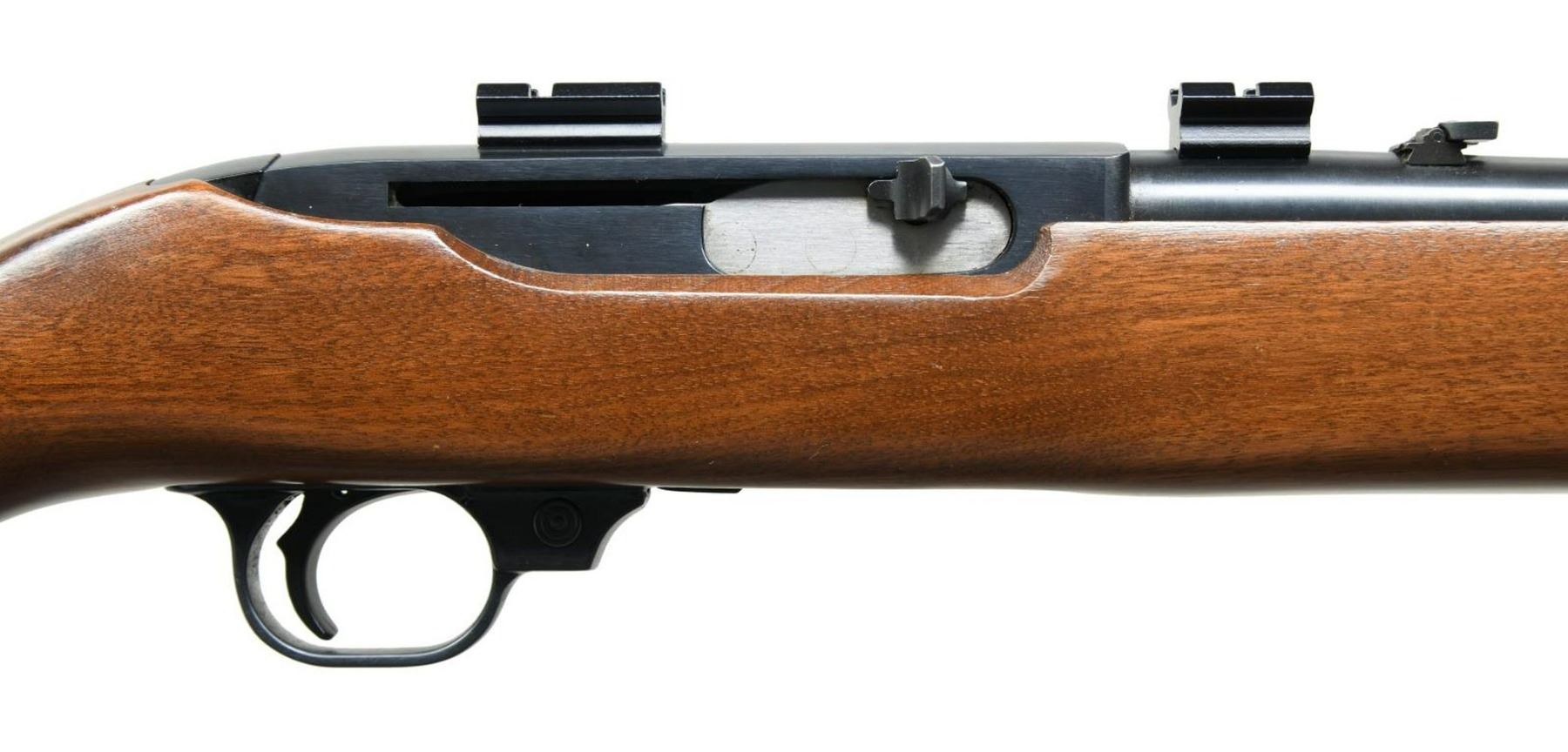 Cal. 44 Mag. S# 102-18820. Bbl. 18". Brass bead front sight. Folding leaf rear sight. Mfg. 1976 w/ right side of bbl. marked "MADE IN THE 200TH YEAR OF AMERICAN LIBERTY". Scope bases present on rear of bbl. & receiver. Walnut stock w/ bottom mounted sling studs. CONDITION: stock has added oil finish w/ some light dings & scattered handling marks. Metal retains 97% original blue w/ some light flaking on buttplate. Very good bright bore. (23-2642/MJC). MODERN. $600-900.