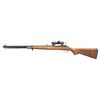 RIFLE. Cal. 50. S# 730-00381. Bbl. 22" round (1 in 28" twist) with dovetailed brass bead front sight; folding leaf rear. Mfg. 1997 (1997-2004; approx. 20,000 units) with blued finish utilizing basic Model 77 Mark II action redesigned for use with muzzle loading caps. Walnut stained birch stock with detachable sling studs and black rubber buttpad. Black fiberglass ramrod. Receiver factory machined for its Ruger 1" scope rings (extension front) holding Millett REDOT SP1 electronic sight. UNATTACHED ACCESSORIES: matching numbered factory box. CONDITION: all aspects near excellent including bore and operable red dot sight set. (01-25516/NW). ANTIQUE. $300-450.