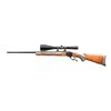 RIFLE. Cal. 220 Swift. S# 132-32236 (mfg. 1982). 26" barrel with 2 piece bases. Redfield Illuminator 3-12x scope with duplex reticle on Ruger rings. Trigger has added shoe. Checkered walnut stock set with beavertail forearm, Ruger grip cap & replacement Morgan's adjustable pad. CONDITION: very good blue with carry wear & receiver having plum tone. Good wood finish with handling marks & wear to finish. Bright shiny bore (24-4270/MD). MODERN. $800-1100.