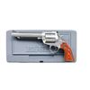 REVOLVER WITH FACTORY BOX Cal. 480 Ruger. S# 88-85181. Produced with a stainless steel finish. Features a 7.5" barrel with adjustable rear sight and ramp front sight. Single action trigger with a non-fluted cylinder holding 6 rounds. The Bisley style grips are smooth hardwood with Ruger medallions. UNATTACHED ACCESSORIES: Factory box, instruction manual, lock, and various paperwork. CONDITION: Overall condition with minimal handling marks. The grips are in excellent condition. The bore is bright and shiny with strong rifling. MODERN. (23-6198) $400-600.