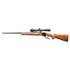 Cal. 270 Win. S# 131-47930. Bbl. 26" round w/ quarter rib. Simmons 8 POINT 3-9x40 matte finished scope w/ duplex reticle on Ruger rings. Semi-beavertail forearm & straight grip stock of nicely grained walnut w/ cut checkering, steel grip cap, solid red pad & swivel bases. CONDITION: 97% blue showing muzzle wear & small marks. Wood finish shows numerous scratches & marks on forend. Very good bright bore. Scope has clear optics. (24-5827/DS). MODERN. $1,000-1,300.