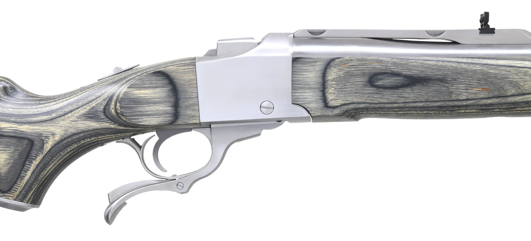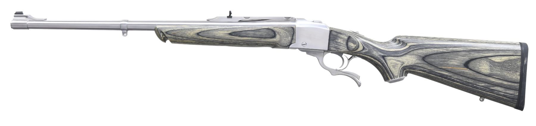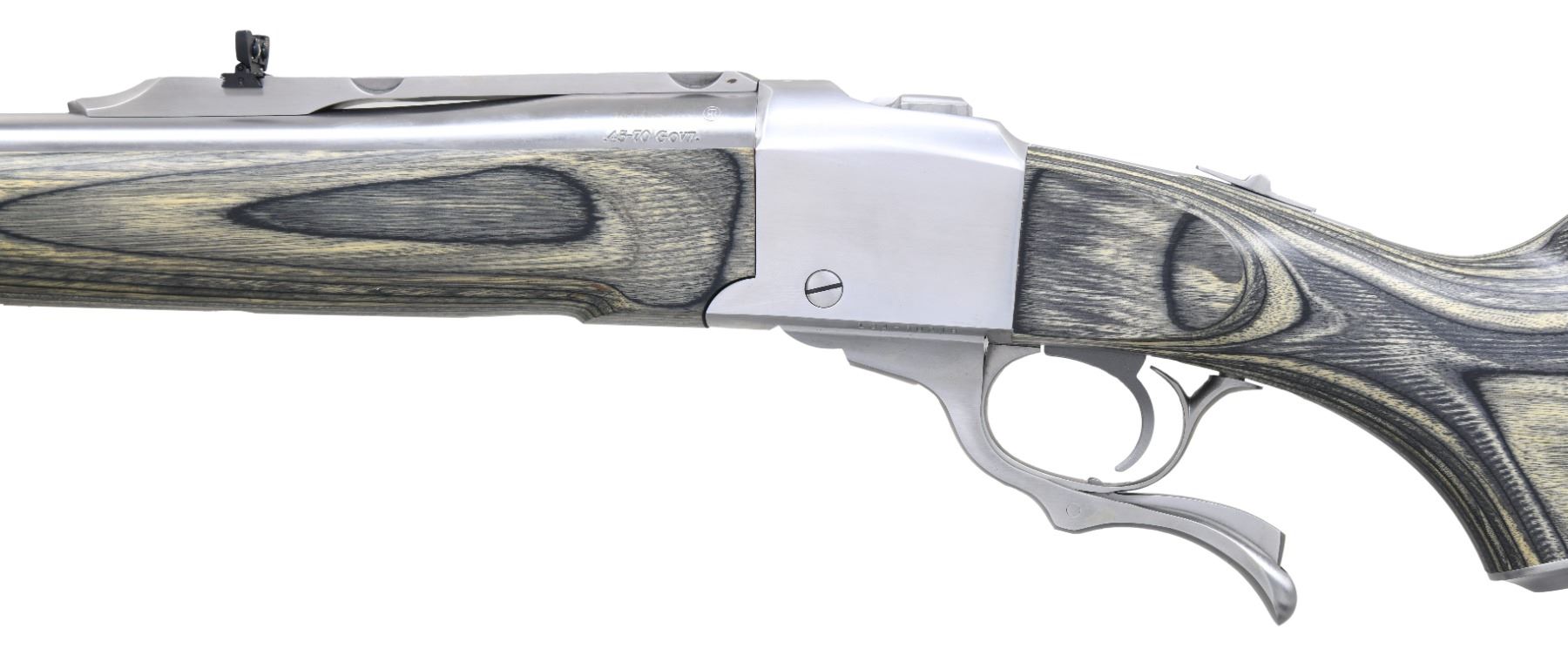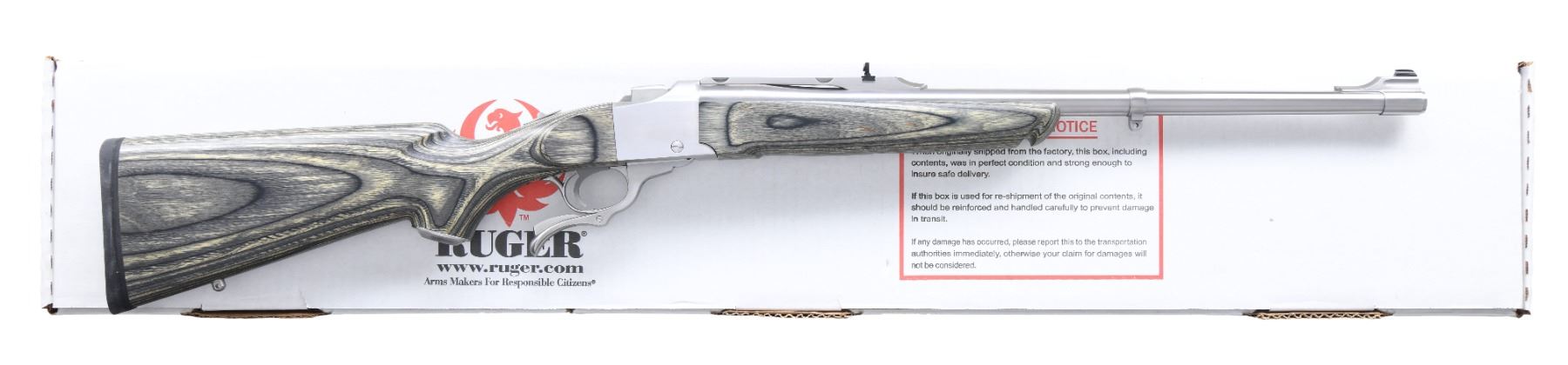 Cal. 45-70. S# 134-30248. Bbl. 22" w/ ramp mounted bead front sight & folding leaf rear sight on quarter rib. Stainless steel construction. Alexander Henry forearm & pistol grip laminated stock w/ steel grip cap, swivel bases & black pad. UNATTACHED ACCESSORIES: original box containing instruction manual, warranty card, offer papers sling swivels, safety lock & Ruger rings. CONDITION: as new w/ box. (24-3726/DS). MODERN. $1,000-1,500.