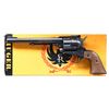 Cal. 30 Carb. S# 7886. Bbl. 7 1/2" with ramped serrated blade front sight; factory frame mounted adjustable rear. Mfg. 1968 (1968-1973) without factory safety update having original lockwork; just under 24.000 produced. Smooth walnut grips with black eagle medallions. UNATTACHED ACCESSORIES: original unmarked 2 piece box with August 1, 1967 manual and unused warranty card. Top is good with scuffs and slight damage to one corner; bottom is poor with split seams and tape repair. CONDITION: all aspects of original finish are excellent to include bore. (24-6606/NW). CURIO. $750-1,000.