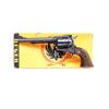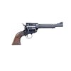REVOLVER WITH MATCHING FACTORY BOX. Please note as of 4/10/25 this item description has been updated. Please revisit this description and contact us with any questions. Cal. 357 Mag. / 9mm Luger. S# 30-99245 (1971). Features include a blued finish, 6.5 inch barrel, ramp front sight, and adjustable rear sight. Frame configuration is standard with no special designations. Cylinder holds 6 rounds and is fluted. Grips are smooth wood with Ruger medallions. Has not had factory safety update; retains original lockwork and alloy ejector housing. Matching numbered 357 Mag. cylinder. UNATTACHED ACCESSORIES: Factory box, extra matching numbered 9mm Luger cylinder, and instruction manual. CONDITION: Overall condition is near excellent. The barrel retains approximately 95% of its finish. Frame shows about 95% finish coverage. Grips are near excellent. Bore is bright with sharp rifling. (23-6641/MD). CURIO. $500-$750.