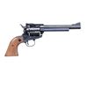 Cal. .357 Mag. S# 106215 (1967). Features include a blued finish, 6.5 inch barrel, ramp front sight, and adjustable rear sight. Frame configuration is standard with no special designations. Cylinder holds 6 rounds and is fluted. Grips are smooth wood with Ruger medallions. UNATTACHED ACCESSORIES: Factory box with non matching number on side. CONDITION: Overall condition is near excellent. The barrel retains approximately 97% of its finish. Frame shows about 95% finish coverage. Grips are near excellent. Bore is bright with sharp rifling. (23-6589/MD) CURIO. $500-$700.
