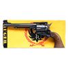 Please note as of 4/10/25 this item description has been updated. Please revisit this description and contact us with any questions. Cal. 357 Mag S# 44887. This Ruger Blackhawk revolver features a blued finish and was produced in 1963. It has a 6.5-inch barrel, a ramp front sight, and an adjustable rear sight. The revolver is equipped with a single-action trigger and a spur hammer. The six-round cylinder is fluted. The grips are smooth wood with Ruger medallions. Has factory safety update parts installed; original parts not present. Steel ejector housing. UNATTACHED ACCESSORIES: factory 2 piece box with 9-1-59 manual plus safety conversion manual. CONDITION: Overall condition is excellent with 95% original finish remaining on the barrel and frame. The grips are in very good condition with minor handling marks. The bore is bright with strong rifling. CURIO (23-6593) $500-700.