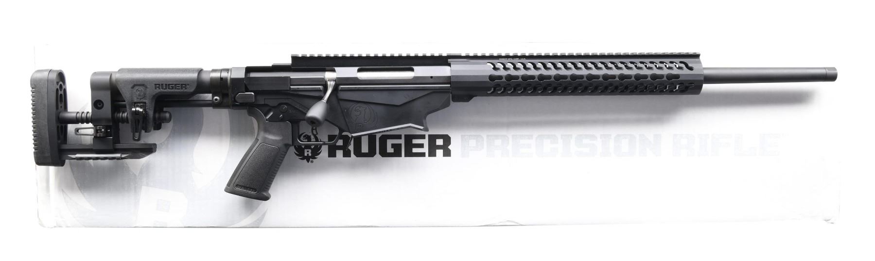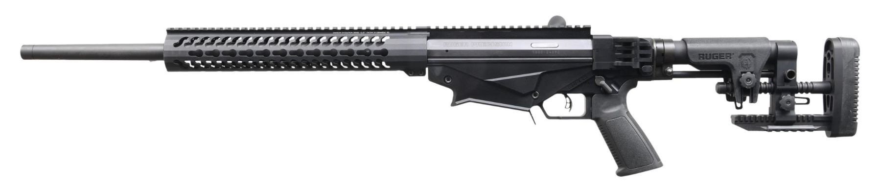 Cal. 308 Win. S# 1800-24690. Bbl. 20" threaded. Full length top mounted picatinny rail for sight mounting. Ruger model number: 18001. Adjustable trigger. Black anodized finish. Folding adjustable stock. Samson Keymod handguard. Black pistol grip. MAGS: 2-10 rd. PMags. UNATTACHED ACCESSORIES: matching numbered factory box with trigger lock, manual, small picatinny rail & paperwork. CONDITION; all aspects near excellent. (23-6753/MJC). MODERN. $800-1200.