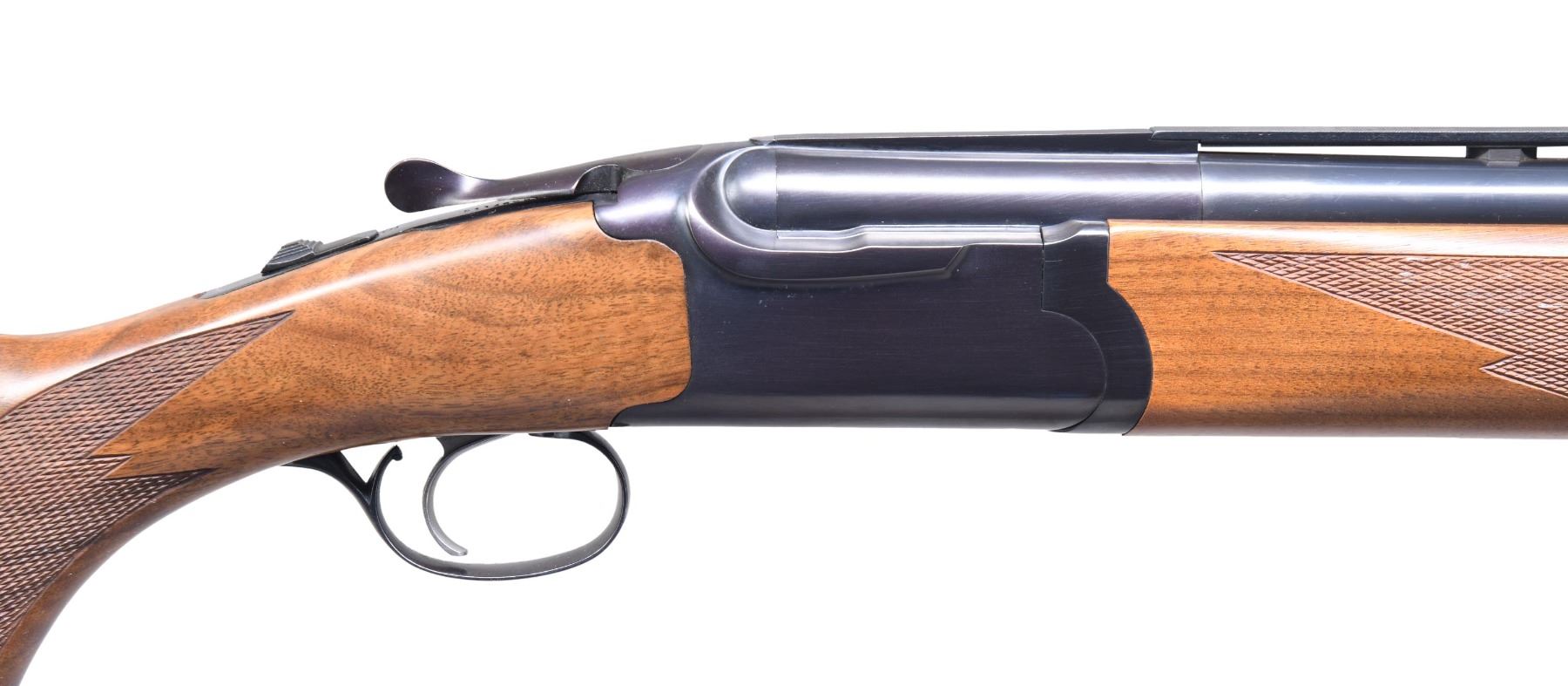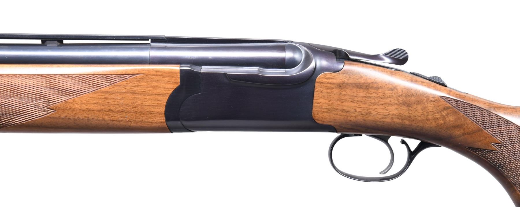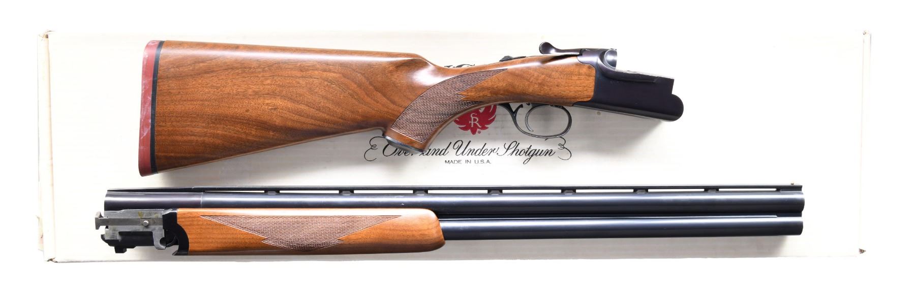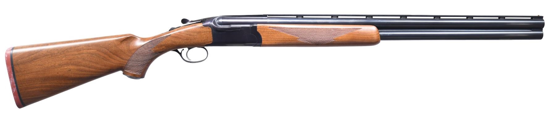 Cal. 12 Ga., 3" Mag. S# 410-57110. Bbls. are matching numbered 26" VR with brass bead sight and screw in chokes. Mfg. 1993 (1982-2011 plus 2013 & 2014) as all blued RL-1226; Model 04123. Very rare as 3" all blued finish; most all blued examples were 2 3/4" chambered. Checkered walnut stock with early red rubber pad and blued grip cap. UNATTACHED ACCESSORIES: matching numbered compartmentalized box with packaging to include spare chokes, etc. CONDITION: all aspects near excellent with new, unfired appearance. Faint plum hue to receiver. (24-3297/NW). MODERN. $1,000-1,500.