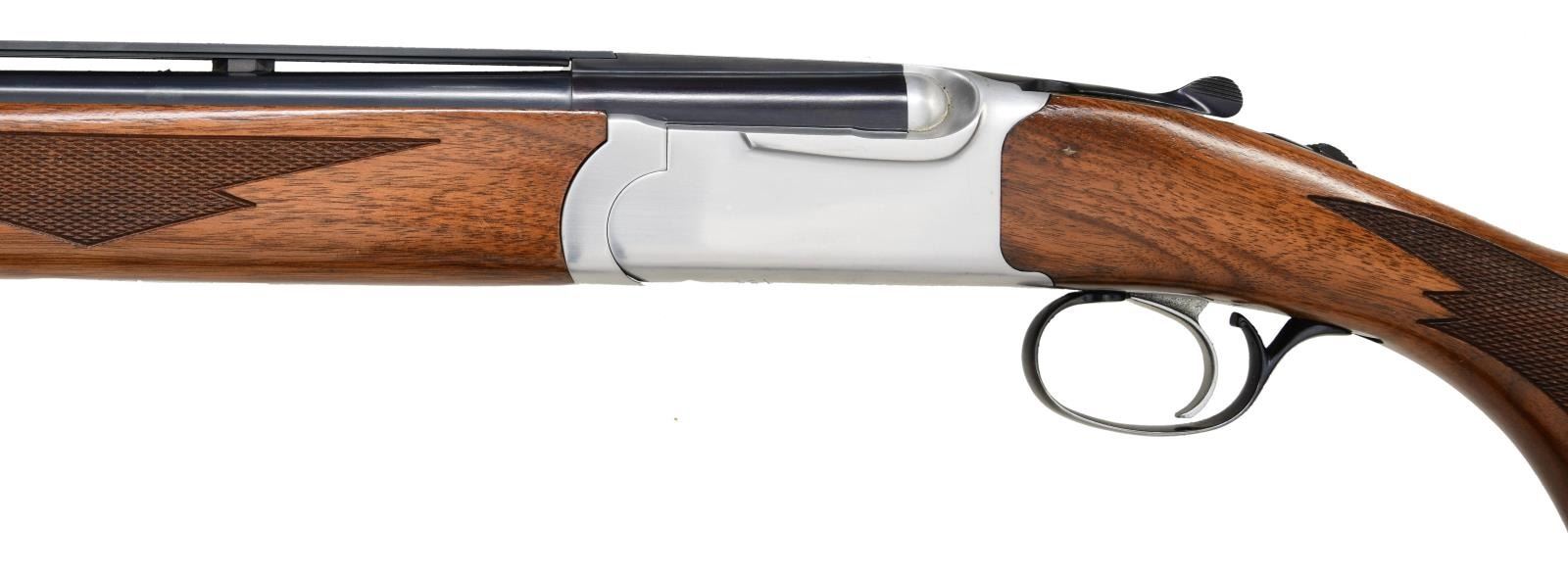 Cal. 28 ga. 2 3/4". S# 420-05413. Bbls. 28" vent rib with brass bead. Factory interchangeable choke tubes; two skeet tubes included. Stainless steel boxlock action. SST. Auto ejectors. Forearm and capped pistol grip walnut stock with cut checkering. LOP: altered to 13 3/4" over an aftermarket declerator pad. CONDITION: 95% metal finish. Wood shows scattered marks & light dents. Very good, bright bores. (23-7058/DS). MODERN. $1,000-1,500.