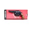 FACTORY BOX. CAL. 380 RIM. S# 159-95781 (1984). This revolver features a blued finish. The barrel measures 4 inches, with a fixed front sight and an adjustable rear sight. The trigger is a double action with a hammer. The frame is a classic Ruger design with a fluted cylinder holding six rounds. The grips are checkered walnut with a Ruger medallion. UNATTACHED ACCESSORIES: Factory box. CONDITION: The revolver is in near excellent overall condition with approximately 95% of the original finish remaining on the barrel and frame. The grips show minor wear but are in excellent condition. The bore is bright and sharp. MODERN (23-6684/MD) $400-$600