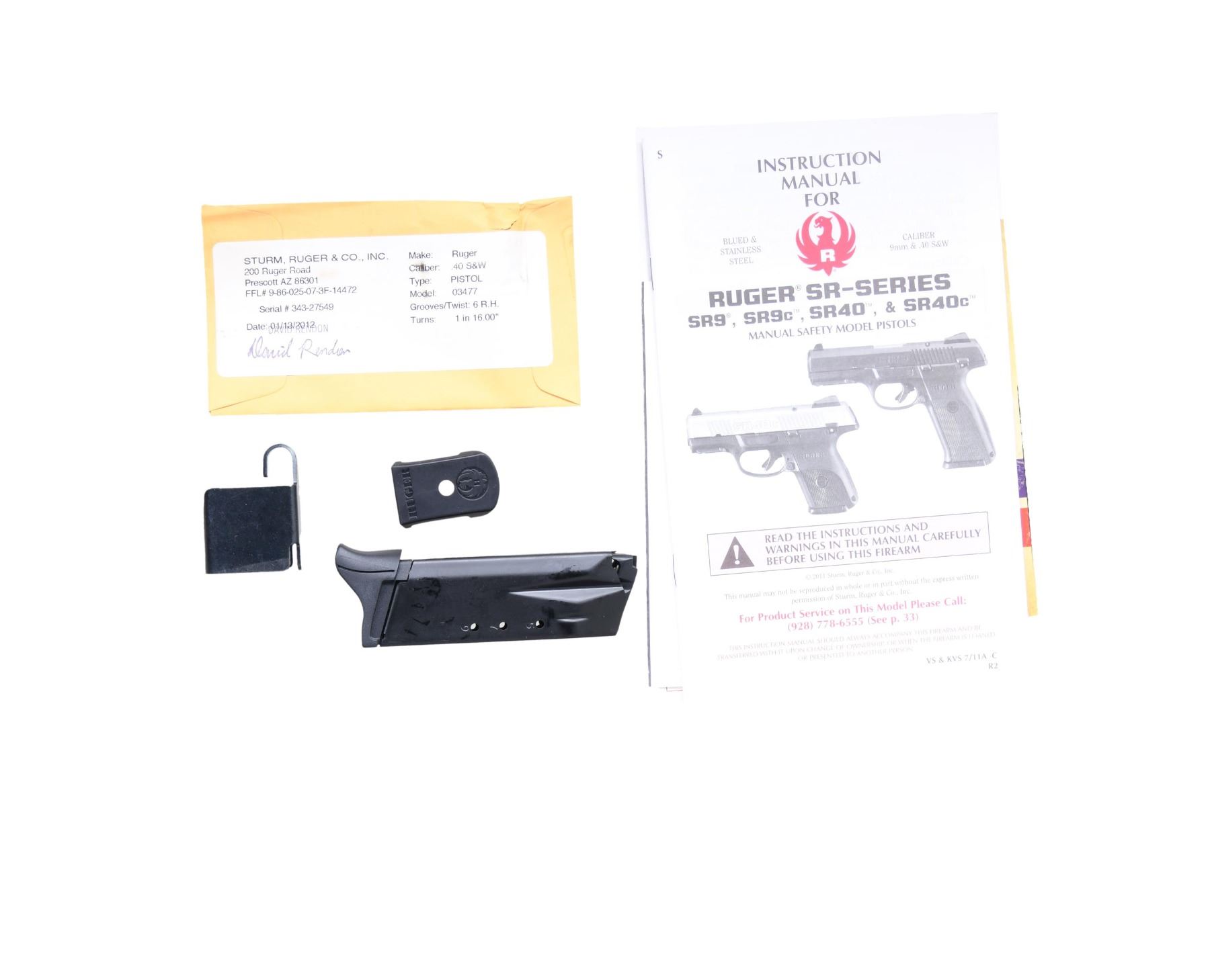 1) SR40C. Cal. 40 S&W. S# 343-27549. Mfg. 2012 as Model 03477; Catalog No. BSR40C. Nitrodox Pro black finish. Bbl. 3.5". Textured black polymer frame. MAGS: 2-15 Rds. UNATTACHED ACCESSORIES: factory box & packaging. CONDITION: near excellent overall; including bore. (24-2946/MD).