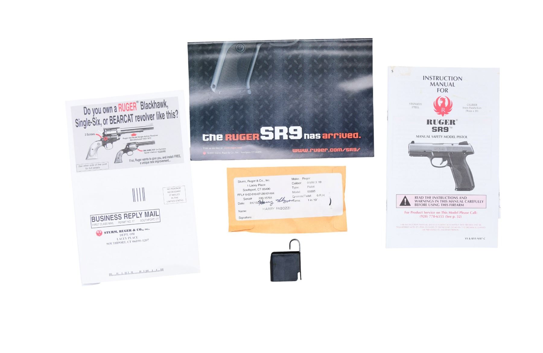 2) SR9 WITH MATCHING FACTORY BOX. Cal. 9mmx19 S# 330-15701 (2008). Catalog No. KBSR9; Model 03305. Black nitride finish. Bbl. 4.14". Textured black polymer frame. MAGS: 1-17 Rds. UNATTACHED ACCESSORIES: factory box & packaging. CONDITION: overall near excellent condition; bore is bright with strong rifling. (24-3465/MD). ALL MODERN. $550-$800.