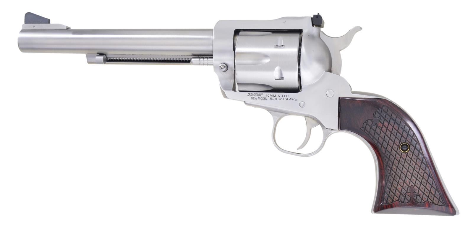 RUGER STAINLESS 10MM / 40 S&W BLACKHAWK REVOLVER.