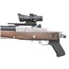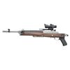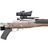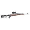 TRIJICON ACOG SCOPE. Cal. 7.62X39. S# 585-01800. Bbl. 16.12" heavy cold hammer forged with 5/8"-24 bird cage flash hider and serrated blade sight having protective ears; factory ghost ring rear sight on rear of receiver. Mfg. 2023 as Model 05868 with black synthetic stock; presently fitted with Samson folding oil finished walnut stock. Patterned after Ruger's original folding stocks that were also made by Samson but with walnut stained birch stocks. Includes Samson upper gas block cover with adapter allowing side mounting of its Samson sling swivel set having black nylon tactical sling. Receiver factory machined for Ruger scope rings plus it's factory drilled and tapped for scope base mounting. Factory Picatinny adapter installed holding Trijicon ACOG 3X24 TA50-C with green dot and horse shoe ballistic reticle specifically for 7.62X39 having 123 grain bullets. Great utility package suitable for fast, close range hunting too. MAGS: NONE. Readily available from Ruger or commercially. CONDITION: all aspects near excellent including bore and optics; looks new. (25-4631/NW). MODERN. $1,500-2,000.
