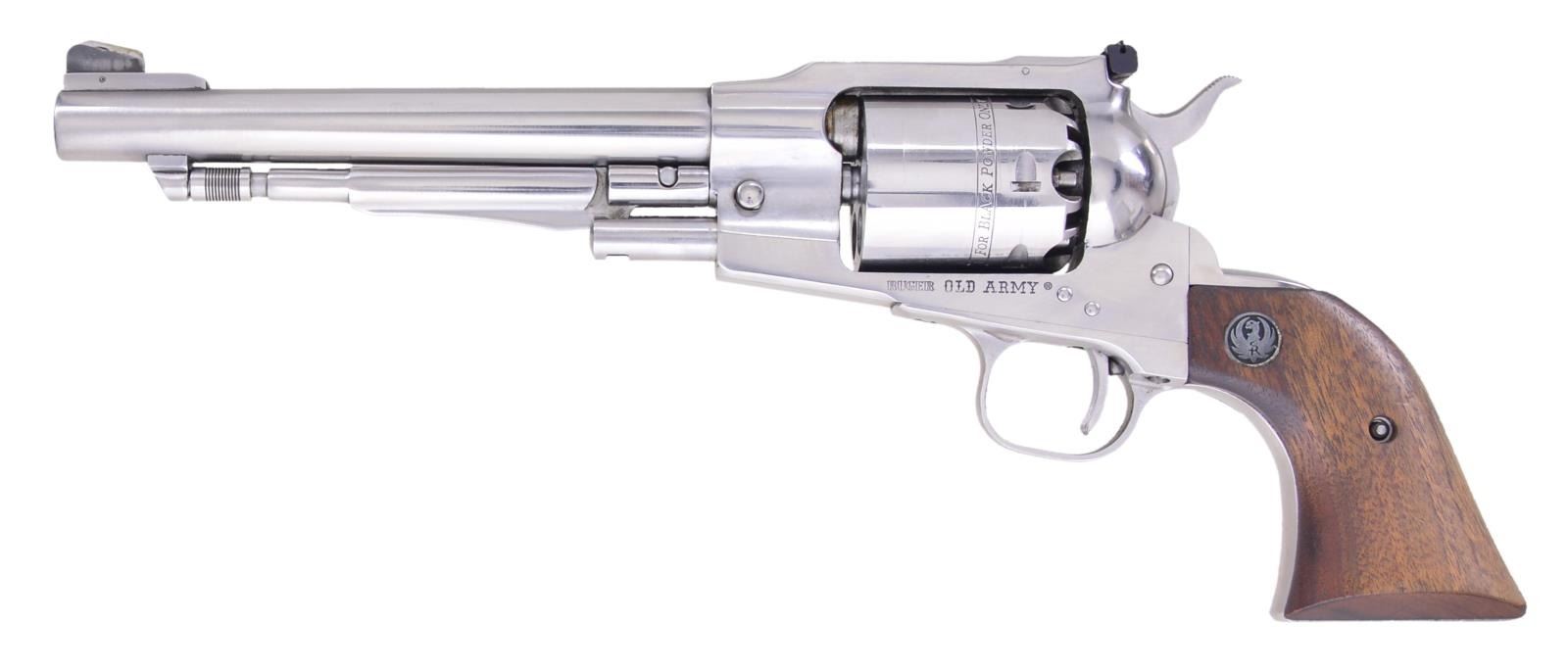 RUGER STAINLESS OLD ARMY REVOLVER & HOLSTER RIG.