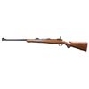 RIFLE. Cal. 338 Win. Mag. S# 78-06870. Bbl. 24" with banded user changeable brass bead front sight plus folding leaf on raised base at rear. Mfg. 1984 (1968-1992) with receiver factory machined for Ruger scope rings. Desirable tang safety plus checkered walnut stock having grip cap, sling studs and red rubber pad. CONDITION: occasional faint stock marks; balance of rifle is near excellent including bore. (24-2811/NW). MODERN. $500-750.