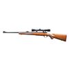 Cal. 30-06. S# 70-33809. Bbl. 22" with factory installed sights; banded ramp at front with user changeable brass bead plus folding leaf rear on raised base. Mfg. 1971 (1968-1992) without "warning marks" on barrel plus checkered walnut stock having grip cap, sling studs and red rubber pad. Receiver factory machined for its Ruger 1" scope rings holding Bausch & Lomb Balfor B internally adjustable gloss finished scope with crosshair reticle. Desirable tang safety model with matching numbered bolt assembly. Replacement Allen head triggerguard screws. CONDITION: close to very good overall appearance with most condition issues showing on stock set having handling marks and some areas of finish loss. Thinning of finish on bolt handle and at muzzle plus scratches on floorplate. Some very faint marks on exterior of scope. Near excellent bore and optics. (24-3134/NW). MODERN. $400-550.