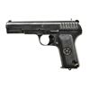 Cal. 7.62 x 25mm. S# 4A717. Bbl. 4 1/2". Mfg. 1939 (1930-1954) at Tula or Izhevsk arsenal. Minimal markings to include: block shaped A on left side of trigger guard, circled R by top front corner of right grip, "n" at top right side of trigger guard & "c" at bottom rear of trigger guard. Star stamp before date on frame & slide, slide stop plus trigger. Matching numbered slide; bbl. marked "xn691". Vertical grooved star grips plus lanyard loop at lower left rear of frame. No import marks or added safety. MAGS: 1 factory 8 rd. numbered "589" w/ lanyard loop. CONDITION: good general overall appearance w/ typical high point wear & thinning at grip straps. Very good grips. Good bore w/ wear & even light pitting in grooves. (22-116/NW). CURIO. $350-500.