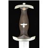 Overall length: 14 3/4". Blade is etched, “Alles fur Deutschland” & marked “RZM M7/66 1941”. Plated crossguard & pommel. Aluminum eagle. Brown enameled SA medallion. Wood grip. Brown painted scabbard w/ plated mts. Brown leather hanger & plated mountings. CONDITION: very good overall appearance w/ friction wear to blade. Tarnish & crazing to mts. Shrinkage of wood grip to mts. Very good scabbard w/ light handling marks. (02-16186/MD). $300-500.