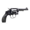 Cal. 32 Winchester (32-20). S# 5219. Bbl. 4" with integral 1/2 moon front sight; frame notched rear. Mfg. 1899-1902 from serial number 1 to 5311 as first model. Matching numbers on frame, cylinder, barrel and monogrammed checkered hard rubber grips. Case colored checkered hammer and smooth faced trigger. CONDITION: good general appearance with freckling, fading turning to grey plus turn line on cylinder. Moderately hand worn grips. Near excellent timing. Good plus bore with distinct rifling and areas of frosting. PROVENANCE: From the Lifelong Collection of George Staden S&W Member #3451. (25-56/NW). CURIO. $500-750.