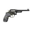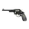 Cal. 38 Spl. S# S149990. Bbl. rare 6 1/2" pinned w/ integral semi circular blade sight plus corresponding notched frame. Mfg. end of 1956 (1950-1966) w/ blued finished 5 screw N frame. 9,493 Mfg. S# 75000-256133 before transitioning to Model 20 in 1957. Matching numbered bbl., cyl. & extractor. Standard case colored serrated face trigger & checkered hammer. Smooth non serrated grip straps. Pachmayr Gripper rubber grip. CONDITION: good to very good overall appearance w/ minimal high point wear but numerous areas fading to give gray patina appearance; cyl., bottom of trigger guard, grip straps & frame butt. Near excellent bore, grips & chambers. PROVENANCE: Estate Collection of Kenneth Horn (Grandson of JC Higgins). (22-476/NW). CURIO. $500-750.
