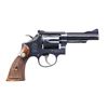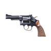 Cal. 38 Spl. S# K 120352. Bbl. 4" pinned with wide grooved rib having ramped serrated Baughman front sight; fame mounted Micrometer adjustable rear. Mfg. 1951 (1949-1999) with matching numbered barrel, cylinder, extractor and Magna checked walnut grips with diamond centers and silver medallions. Case colored standard serrated trigger and checkered target hammer. Grip straps have 6 grooves each. Blued 5 screw K frame has S&W fitted trigger over travel stop to enhance accuracy. CONDITION: very good plus overall original finish with some slight thinning (holster wear) at some high points being most visible at muzzle plus light cylinder turn line. Near excellent bore. Very good left grip; right has small chip; light marks on butt of both. PROVENANCE: From the Lifelong Collection of George Staden S&W Member #3451. (25-79/NW). CURIO. $450-600.