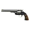 REVOLVER. Cal. 45 S&W Schofield. S# 2856. Bbl. 7" with half moon brass blade sight plus rear sight notch in barrel latch. Mfg. 1875; S# 1 to 3035. All correct markings including "U.S." on butt at front rather than on rear for later models. Matching numbered barrel, cylinder and grips. Early "L" and "P" acceptance marks on barrel and cylinder but just "L" on top of frame under cylinder. Left grip has very faint boxed cartouche. Very scarce desirable early model with all correct factory markings. CONDITION: close to very good original finish having holster like wear on barrel and cylinder along with scattered areas of peppery oxidation. Trigger guard  and hammer have gray tone, as all case coloring has faded away. Sides of frame have good amount of original bright S&W blue along with light scratches to include 3 streaks of finish loss on right side behind recoil shield. Left grip very good with hand wear and faint marks on butt. Right grip similar with addition of smoothed chips on forward half at butt. Grip straps thinning with beginning patina appearance. Cylinder has cleaned mottled appearance of gray patina being darker in grooves having cleaned peppery oxidation throughout. Lock up and mechanical function clearly near excellent. Bright very good bore with streaks of light pitting on lands in rear half. (01-21435/NW). ANTIQUE. $4,000-6,000.