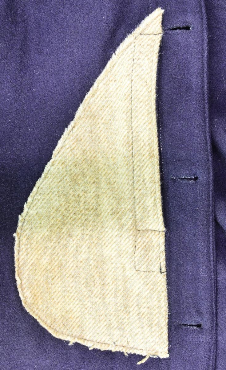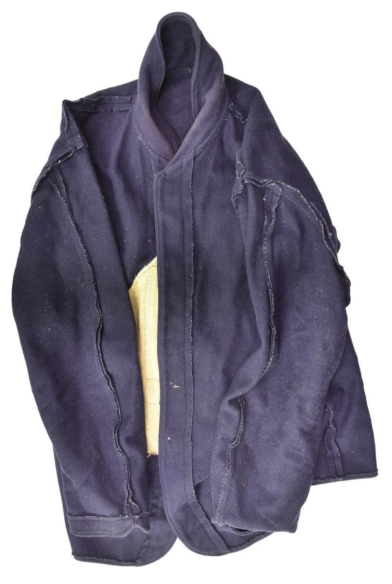 3) Dark blue coat w/ US Army buttons similar to Model 1858. Unsigned by user or maker. CONDITION: Good overall condition w/ tight stitching. (02-16857/MD). $200-400.