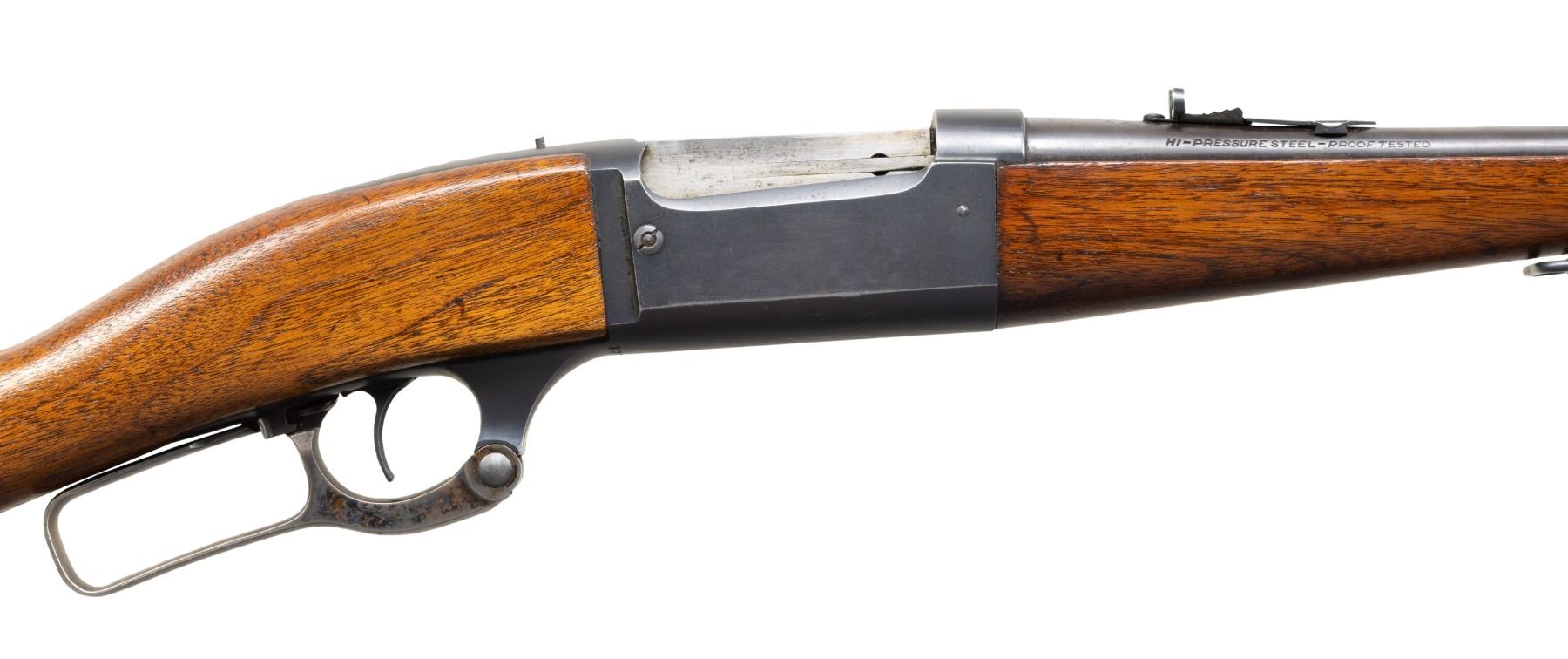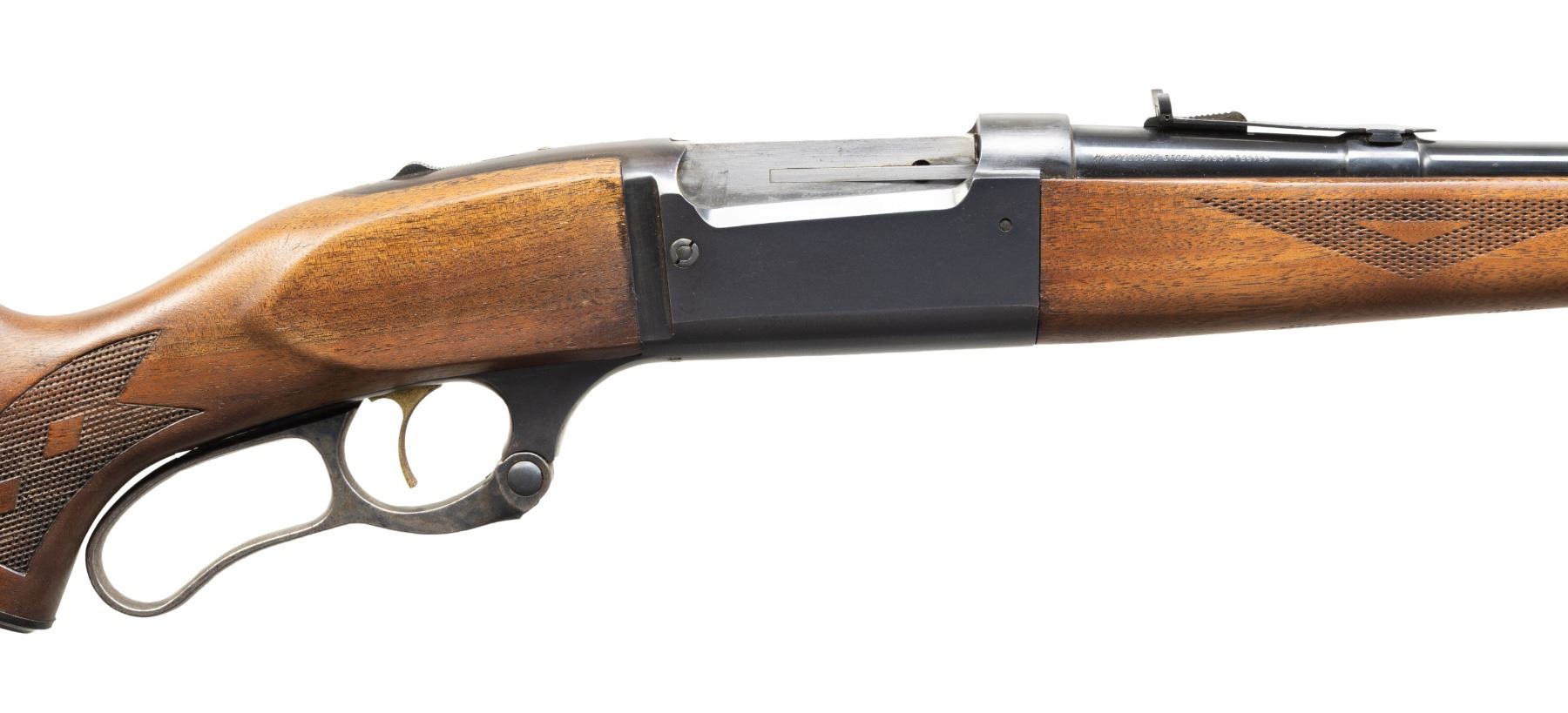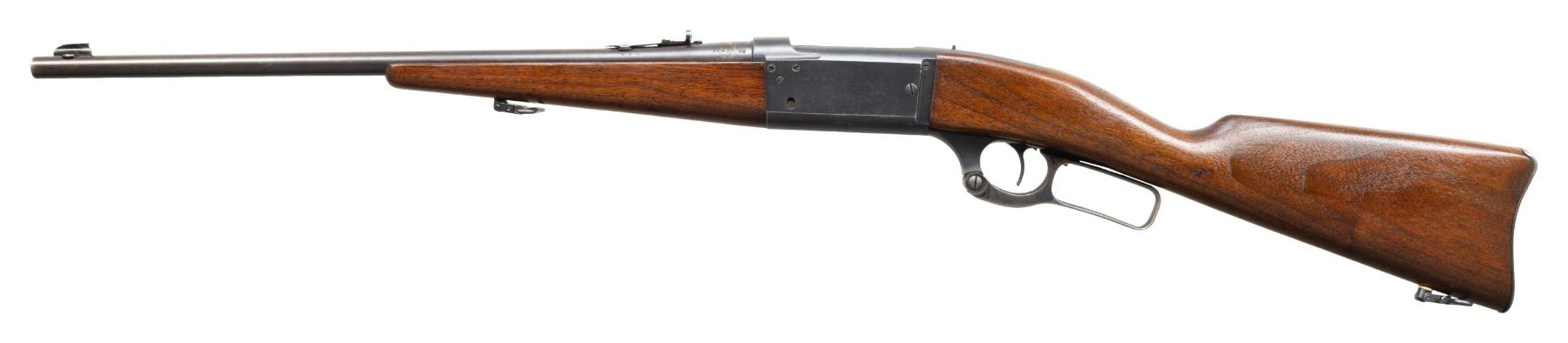 1) 99H. Cal. 30-30. S# 321368 (mfg. 1929). Bbl. 20". Marbles Sheard blade front sight & Marbles adj. elevator rear sight. Rotary mag. action D&T for tang sight, brass cartridge counter, sliding lever safety & cocking indicator. Walnut stock set w/ added sling studs w/ QD swivels, carbine buttplate & 20 kill notches. CONDITION: fair blue fading brown patina showing streaks of carry wear, scattered marks & peppery oxidation. Wood has added finish w/ a few hairline cracks. Wood has extra varnish with scattered handling marks. (25-5968/MD).
