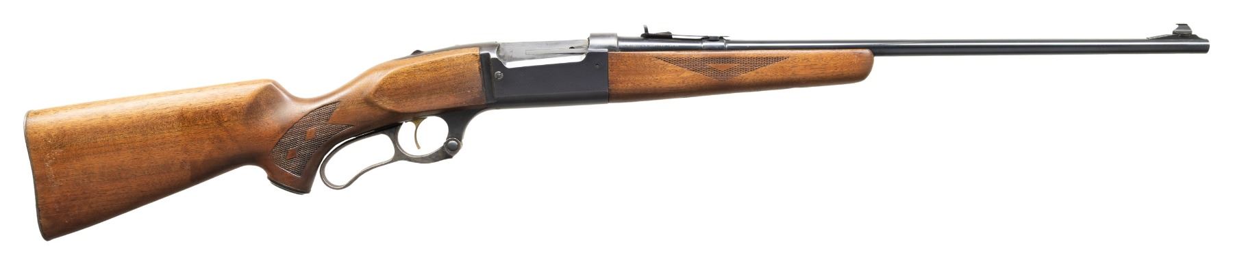 2) WESTFIELD, MASS. MODEL 99F. Cal. 308 Win. S# 1080926 (MFG. 1964). Bbl. 22". Blade front sight & folding elevator rear sight. Rotary mag. action has open holes for scope bases, cocking indicator, top tang safety & cartridge counter; left side chamber stamped "X". Press checkered walnut stock set. CONDITION: very good metal finish w/ light marks from previous rings. Lightly sanded & refinished wood. Very good shiny rifling. PROVENANCE: From the PMRB Collection. (25-5969/MD). ALL CURIO. $800-1,200.