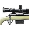 6.5-20x50MM LR/T SCOPE. Cal. 308. S# K220809. 24" fluted heavy barrel. Matte black finish on all external metal parts. Enlarged, knurled bolt handle. Threaded muzzle, currently wearing heavy muzzle brake. Synthetic stock painted tan, w/ checkered pistol grip & soft rubber 1" recoil pad. 7.5" picatinny base currently sporting Leupold MK 4 6.5-20x50mm LR/T scope w/ adjustable objective. MAGS: 1 factory 10 rd. UNATTACHED ACCESSORIES: Factory cardboard box. CONDITION: Finish is complete & consistent w/ full coverage. Stock possesses a few tiny areas where end user applied tan paint has chipped away exposing original color. Scope glass is clear w/ sharp reticle. Trigger is light & crisp. Muzzle brake demonstrates some light "greening" inside ports. Bore is bright w/ strong rifling. (22-5723/JZ). MODERN. $1,200-1,800.