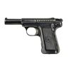 Cal. 32 ACP. S# 97741. Bbl. 4". Mfg.1907-1920. Blued finish. Fixed sights. Serrated slide. Left side safety. Front mounted mag release. Exposed hammer spur. Black plastic checkered grips w/ Savage logo in center. MAGS: 1 steel 10 rd. CONDITION: Finish coverage complete & consistent retaining a bright tone. Bluing shows light thinning primarily in areas of heavy intervention under close inspection, primarily on barrel and rear of grip. Grips in nice condition w/ no noticeable damage. Bore is a dark w/ descent rifling. (22-6091/JZ). CURIO. $300-500.