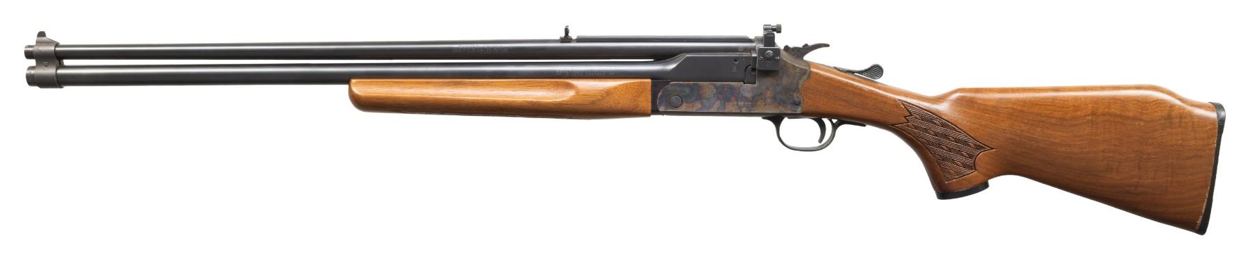 Cal. 30-30 / 20 Ga., 3". S# C932527. Bbls. 24". Blade front sight, folding rear sight & Lyman 53D receiver sight. Case colored action w/ top lever opening & selector on hammer. Press checkered walnut stock set w/ replacement buttplate. CONDITION: very good blue. & case colors. Very good finish on wood w/ chipping of plastic forearm attachment piece & factory appearing epoxy repair bottom of grip. Shiny bores. Red paint on front sight blade. PROVENANCE: Estate of Groves Herrick. (25-5644/MD). MODERN. $500-750.