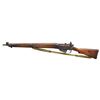 Cal. 303 Brit. S# OC11156. Bbl. 25 1/2" w/ British sale proofs. Bolt is mismatched, other visible parts unnumbered. Right side of receiver marked w/ "ENGLAND" export stamp. Top of left receiver rail marked "U.S. PROPERTY". Left side of receiver marked w/ a double struck flaming bomb & "S No. 4 MKI*". Flip up rear sight w/ 300 & 600 apertures. Blade front sight w/ protective ears. Hardwood stock set w/ bottom mounted sling swivels. Canvas SMLE style sling is present. CONDITION: stock set has added oil finish w/ a 1" chip forming at heel, scattered dings & handling marks. Metal is mostly a dull gray patina w/ a large area of dings on magazine, scattered oxidation staining & traces of arsenal blue. Fair bore w/ scattered frosting & light pitting. (22-3615/MJC). CURIO. $400-600.