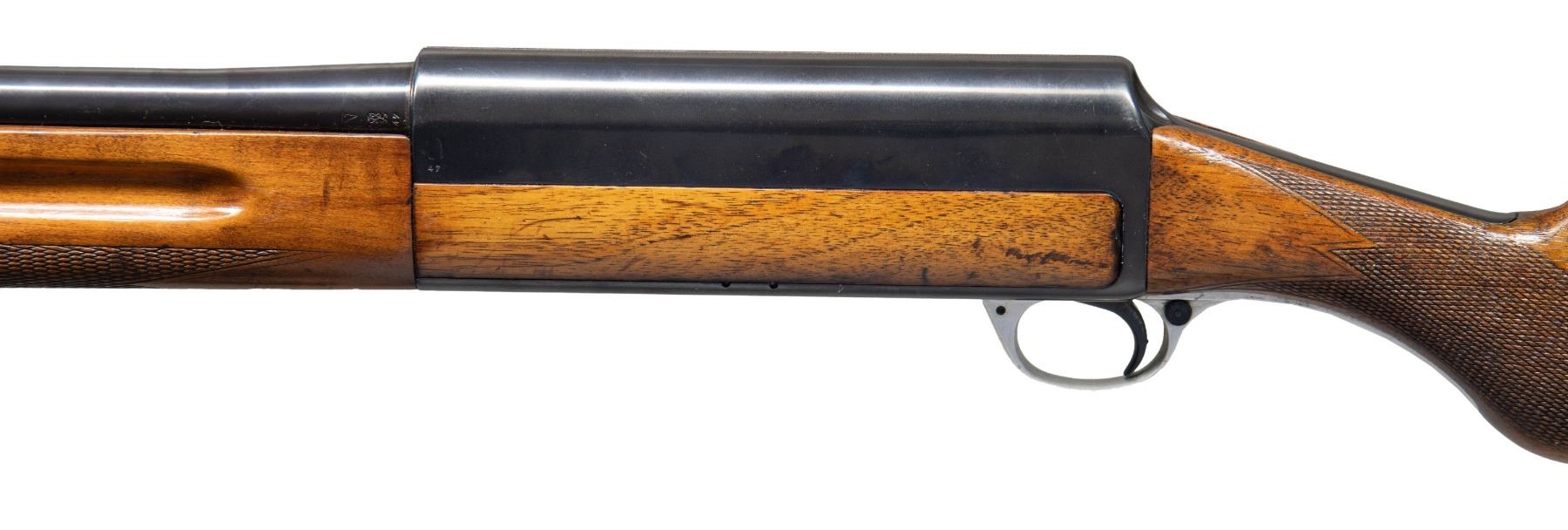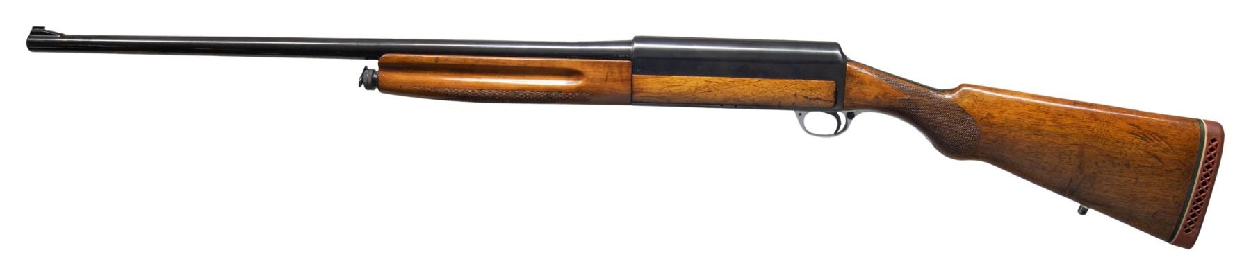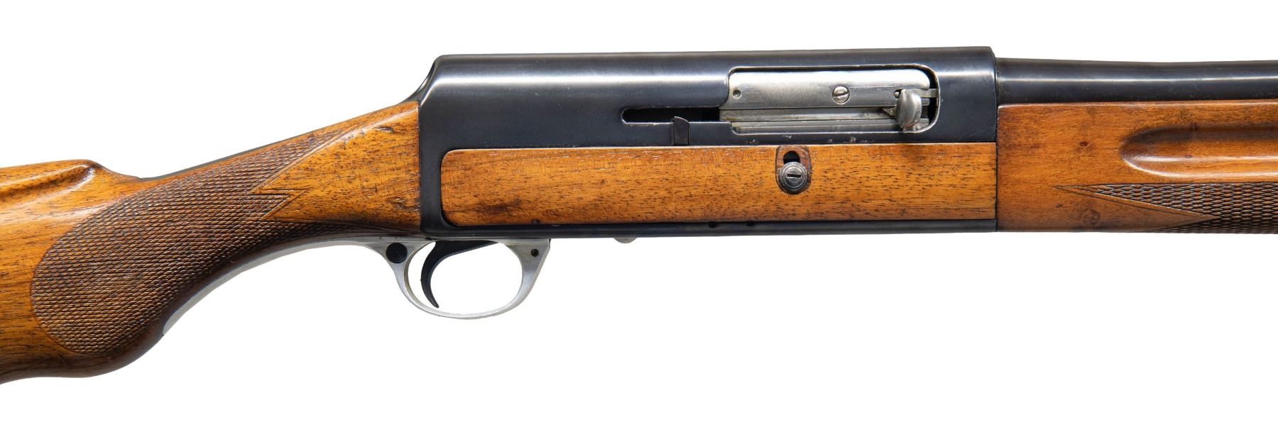 Cal. 20 Ga., 2 9/16". S# 5050. A scarce example of the only semi automatic, 3 shot, shotgun produced by CZ of the Uhersky factory. Developed before World War II as a competitor to the Belgian FN Auto 5 shotgun. After World War II, CZ started producing the finished design around 1946; this shotgun has 1947 Czech proofs. Production was halted in 1949 as the factory stopped producing the shotgun & moved towards producing Vz 48 SMG's. Bbl. 24.5" w/ blade front sight. Bore choke appears to measure Cyl. Alloy long recoil action w/ walnut side panels, sliding button release, & sliding loading gate on bottom. Checkered walnut stock set. Finger grooves on forearm. Semi pistol grip buttstock has added toeline sling stud. LOP: 14 7/8" to added Pachmayr White Line pad. Mag. cap has added swivel. CONDITION: metal has reblued finish showing marks. Sanded & refinished wood shows dings & marks. Shiny bore shows fouling streaks. (25-4451/MD). CURIO. $300-500.