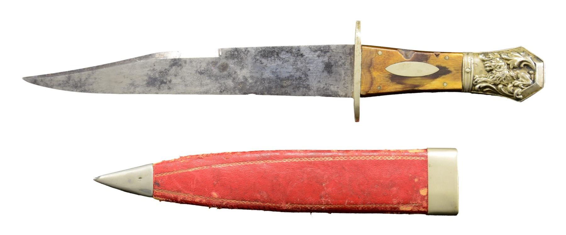 SCARCE EARLY WOODHEAD "LION" POMMEL BOWIE KNIFE.