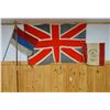 SERBIAN, SPANISH, BRITISH FLAGS & AN INDOOR FLAG