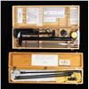 1) 1- "HOSFORD & CO." older style wall thickness gauge with two spuds, large for 20 gauge and up and smaller for .410 & 28 gauge. Complete in wooden box. CONDITION: very fine; looks unused. 2) 1- "Stan Baker" pull through choke and bore gauge for 12, 20, and 410 gauges with extra spuds for 28 and .410. Complete in wooden box. CONDITION: fine; showing overall light oxidation which should clean. PROVENANCE: From the Private Collection of Berrien Moore III. (02-25880-1/MGM). $400-800.