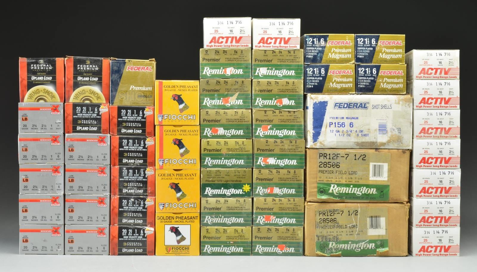 12 GA., 2 3/4".: 13 BOXES Rem. Premier #8. / 1 BOX Rem. Premier STS Handicap #8. / 20 BOXES Rem. Premier Field Load # 7 1/2. / 14 BOXES Federal Premium Magnum #6. /