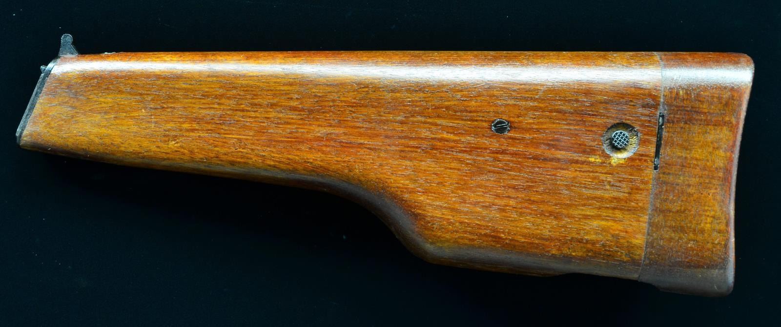 Very nice reproduction unit w/ attachment iron. Only marking is red 98 (or 86) under butt pad. (02-17437-11). $100-200.